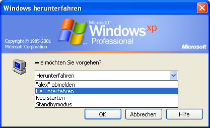 Bitte nicht den WippschalIter auf der Rechnerhinterseite verändern. Der Teacher-Rechner darf nicht heruntergefahren werden, an diesem Rechner sollte sich der angemeldete Benutzer nur abmelden. Dazu nur die Option Abmelden wählen.